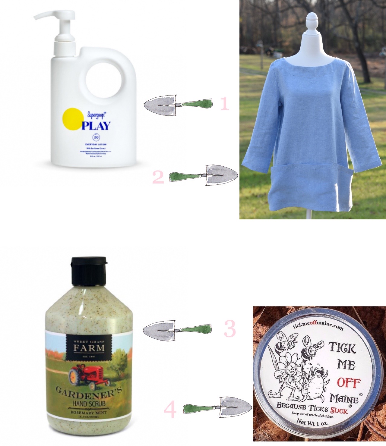 - WorkShirt: I wear the WorkShirt every time I work in the field or garden. While it seems as if a sleeveless or short sleeve may be better, I wear it to protect myself from the sun. The linen material help keep me cool (ish).